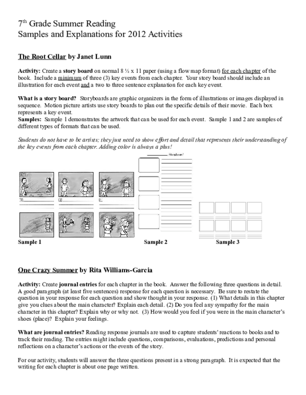 Doc 7 Th Grade Summer Reading Samples And Explanations For 2012 Activities Mai Lin Graves Academia Edu